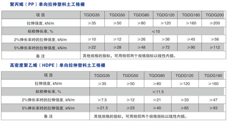 6、擋土墻和橋臺(tái)屬于受力結(jié)構(gòu)體,承擔(dān)外部所有荷載:主動(dòng)土壓力、結(jié)構(gòu)體上部的動(dòng)載、溫度應(yīng)力等,加筋材料長期處于較大的張力作用下,以及動(dòng)載的反復(fù)作用下,材料的分子結(jié)構(gòu)產(chǎn)生疲勞,其性能發(fā)生衰減,加速格柵的老化。為避免結(jié)構(gòu)因加筋材料的蠕變而產(chǎn)生較大變形,應(yīng)選擇以高密度聚乙烯(HDPE)為原料的單向塑料土工格柵。