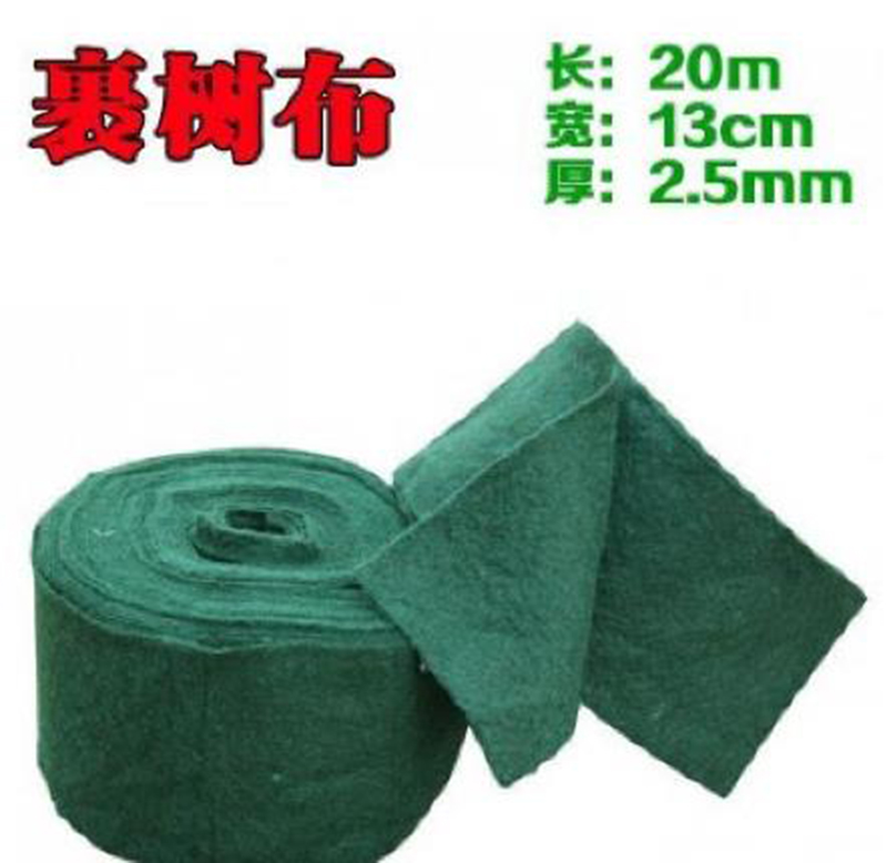 裹樹布滌綸短絲纖維面料織造而成,厚度為2mm~5mm,表面可覆蓋可降解薄膜,具有透氣性強,吸濕性好,保暖性好等很多優(yōu)點。可降解綠色纖維樹木養(yǎng)護帶,在生產(chǎn)過程中不加任何粘結(jié)劑,固化劑等有毒有害化工原料,且能夠在自然環(huán)境下完全分解,對保護環(huán)境有積極的作用。